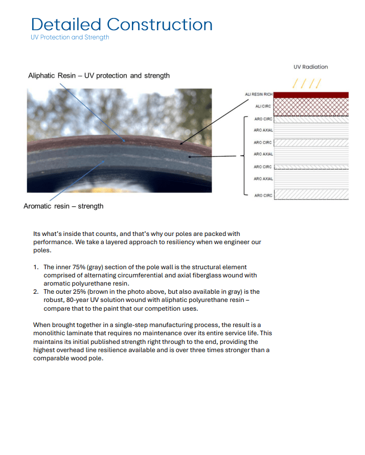 Successfully integrating composite poles into your grid is simpler and safer thanks to our commitment to supporting every client with training and on-the-ground assistance when necessary. The Resilient Structures’ Technical team is the direct connection between your front line crew and the safe assembly and installation of our composite poles.